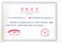 河北省工業和信息化廳鑄造用生鐵企業認定證書